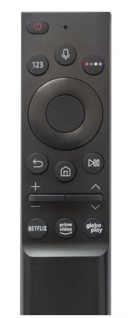 Controle Original Samsung Com Comando de voz Linha 2021 BN59-01363D Modelos compatível: 43AU7700 – UN43AU7700GXZD 50AU7700 – UN50AU7700GXZD 55AU7700 – UN55AU7700GXZD 58AU7700 – UN58AU7700GXZD 60AU7700 – UN60AU7700GXZD 65AU7700 – UN65AU7700GXZD 70AU7700 – UN70AU7700GXZD 75AU7700 – UN75AU7700GXZD 85AU8000 – UN85AU8000GXZD 75AU8000 – UN75AU8000GXZD 65AU8000 – UN65AU8000GXZD 60AU8000 – UN60AU8000GXZD 55AU8000 – UN55AU8000GXZD 50AU8000 – UN50AU8000GXZD Controle Remoto Único UM CONTROLE E NADA MAIS Aquela confusão de controles no seu ambiente acabou. O exclusivo Controle Remoto Único reconhece todos os aparelhos compatíveis conectados a TV e passa a controlá-los também. Controle remoto com plástico reciclável REDUZ O IMPACTO NO MEIO AMBIENTE Com quase um terço feito de plástico reciclável, o controle remoto Eco, além de prático, moderno e leve, ainda é pensado para causar o mínimo de impacto no meio ambiente. – Produto Novo, Original – Pronta Entrega – Fabricante: samsung – Teclas Atalho: Netflix, Prime Video, Globo Play – Não Acompanha Pilhas – Cor: Preto