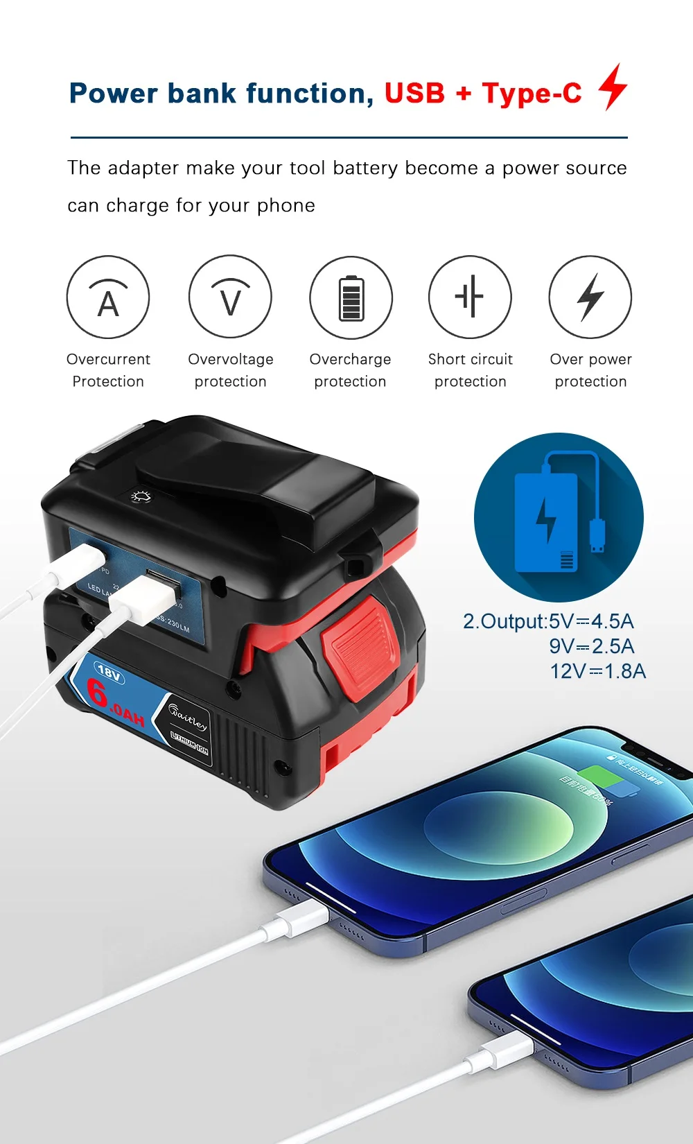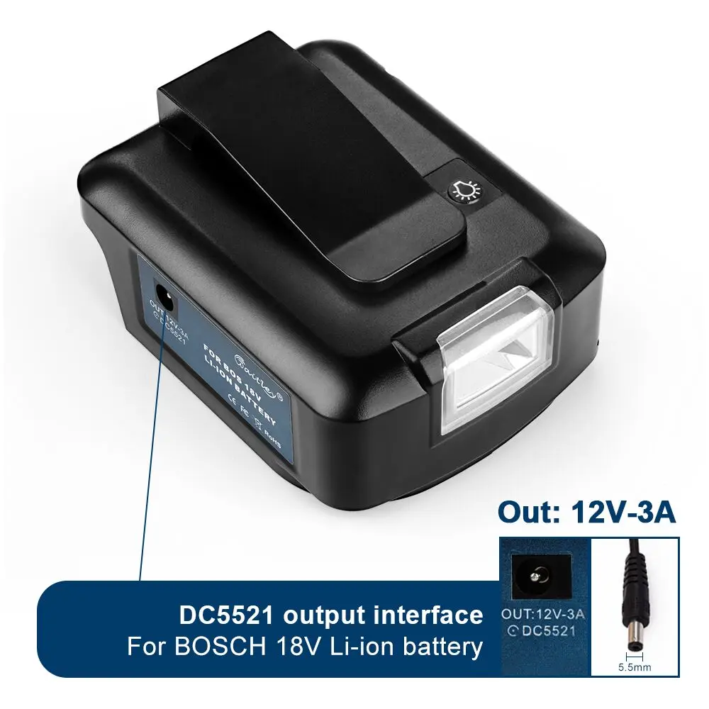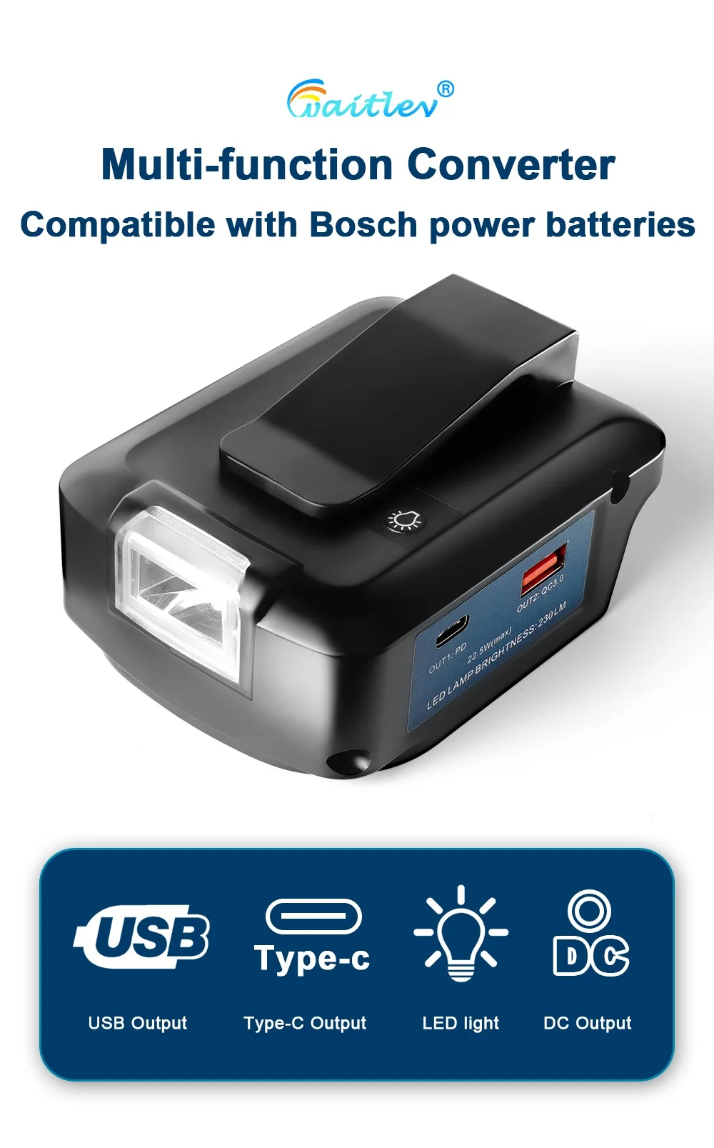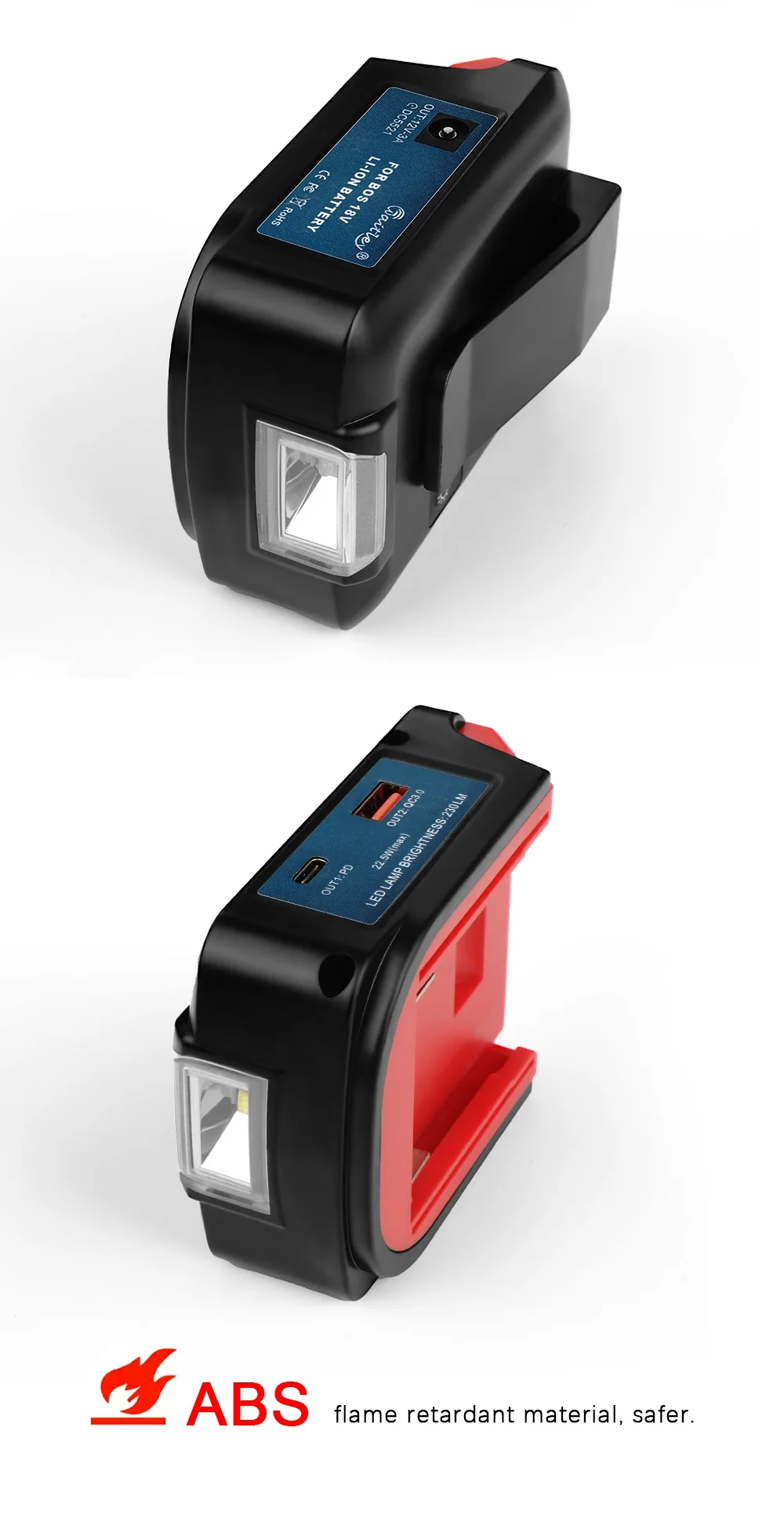 Este é um adaptador para baterias Bosch de 18V, que pode ser usado para iluminação externa e carregamento de saída USB tipo C após instalação de baterias Bosch.também pode ser usado como suporte.