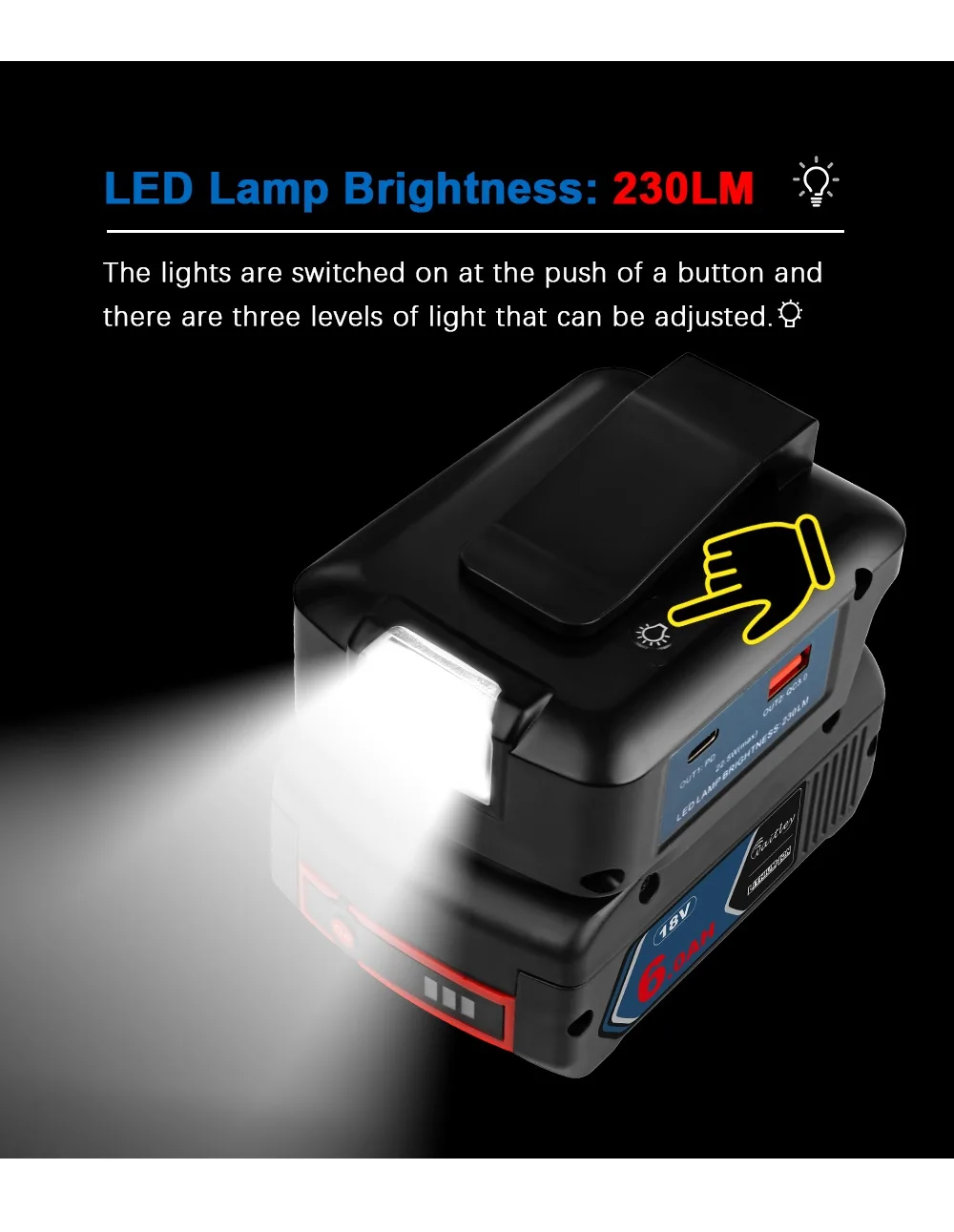 lanterna para bateria Bosch 18V com luz LED e saída USB Type-C DC12V