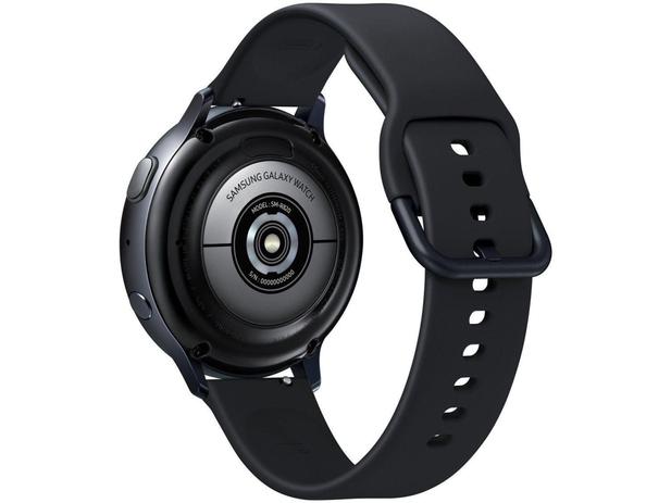 O Galaxy Watch Active2 da Samsung tem um design minimalista inovador e moderno. Sua caixa tem 44mm feita em alumínio, que é leve e resistente. Com display de 1.4″ e uma tela com bordas finas, que oferece maior brilho e melhor visualização de conteúdo. Possui uma coroa virtual o que torna o acesso as funções e aplicações mais rápido e facilitado. Disponível na cor preta, sua pulseira preta de borracha fluorelastômero traz um visual sofisticado. Com microfone e alto-falante embutidos permitem receber e fazer chamadas telefônicas, enquanto pareado com o smartphone. Recebe mensagens e notificações. É um smartwatch ideal para quem tem um estilo de vida saudável, para a prática de esportes e monitoramento da qualidade de sono e nível de stress. Ele vem equipado com GPS que rastreia com maior precisão suas trilhas. Além das novas funções para facilitar seu dia-a-dia, como controlador de câmera, acesso a redes sociais, calculadora, pois conta com 4GB de memória interna. E se você acha que isso é pouco, ele ainda permite que você faça combinações de roupas com o visor do relógio. Ao tirar uma foto do seu look do dia, o seu smartwatch escolherá um mostrador de relógio para combinar com o seu visual e o seu humor, deixando ele com a sua cara.